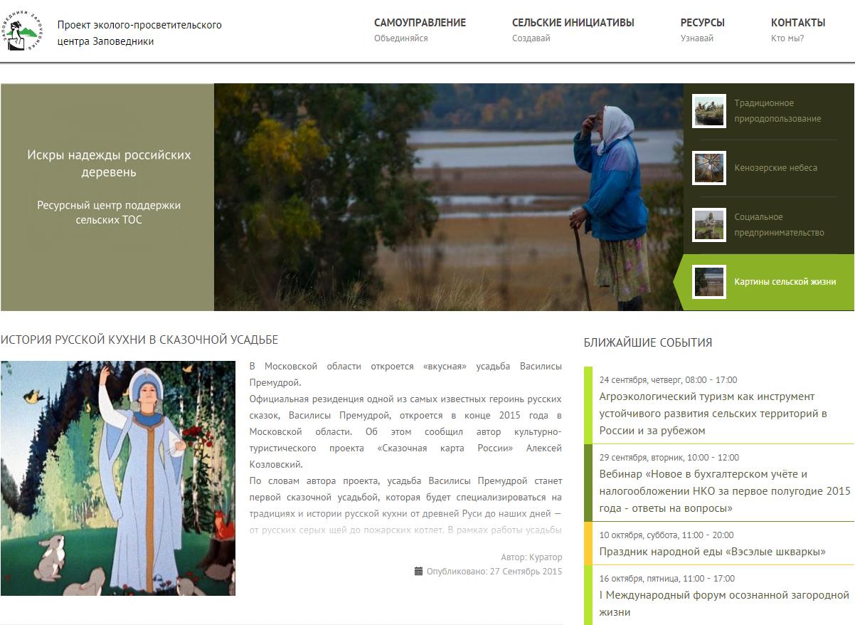 В целях содействия развитию гражданского общества в российских деревнях через поддержку сельских инициатив, направленных на устойчивое социально-экономическое развитие регионов ЭкоЦентром “Заповедники” получившим государственную поддержку, был запущен проект "Искры надежды российских деревень. Ресурсный центр поддержки сельских ТОС”.