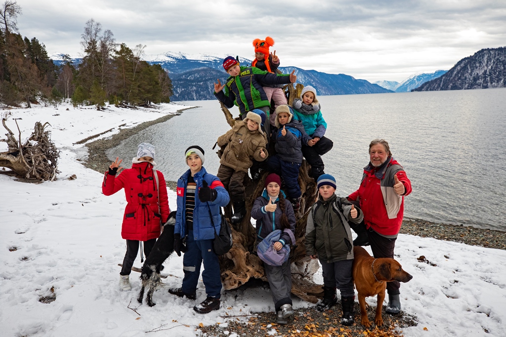 После выполнения своего гражданского долга Заповедный Дозор в сопровождении сотрудников заповедника Александра Лотова и Евгения Веселовского оперативно выдвинулся в восточном направлении и после выхода за пределы села спустился к берегу Телецкого озера. Под шум волн и шелест прибрежной гальки старшие товарищи поставили задачу – все большие ветки и корневища нужно выложить вдоль кромки прибоя для создания при помощи мороза, ветра и незамерзающего Алтын-Кёля естественных ледяных скульптур. Таких, какое Телецкое озеро создаёт каждую зиму уже тысячи лет на камнях и упавших деревьях у самой воды. Только сейчас нужно помочь ему украсить линию прибоя плавником, который был выброшен на берег во время паводка. И работа закипела. Старые пни с длинными корневищами, толстые сосновые ветки, полусгнившие брёвнышки – всё пошло в ход. Ребята не просто подтаскивали основы для ледяных скульптур, но и старались уложить их таким образом, чтобы у озера было как можно больше возможностей для творчества.