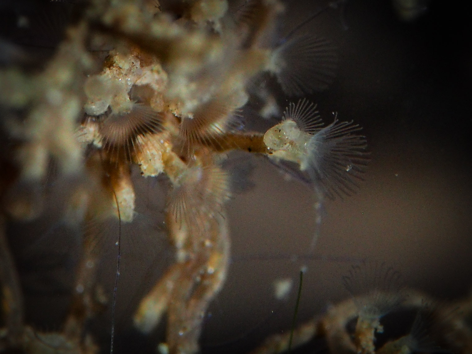 На этот раз в объектив попали те, рядом с кем даже гидры кажутся огромными чудовищами. Искали мшанок давно, но только сейчас удалось обнаружить и сделать фотосессию.