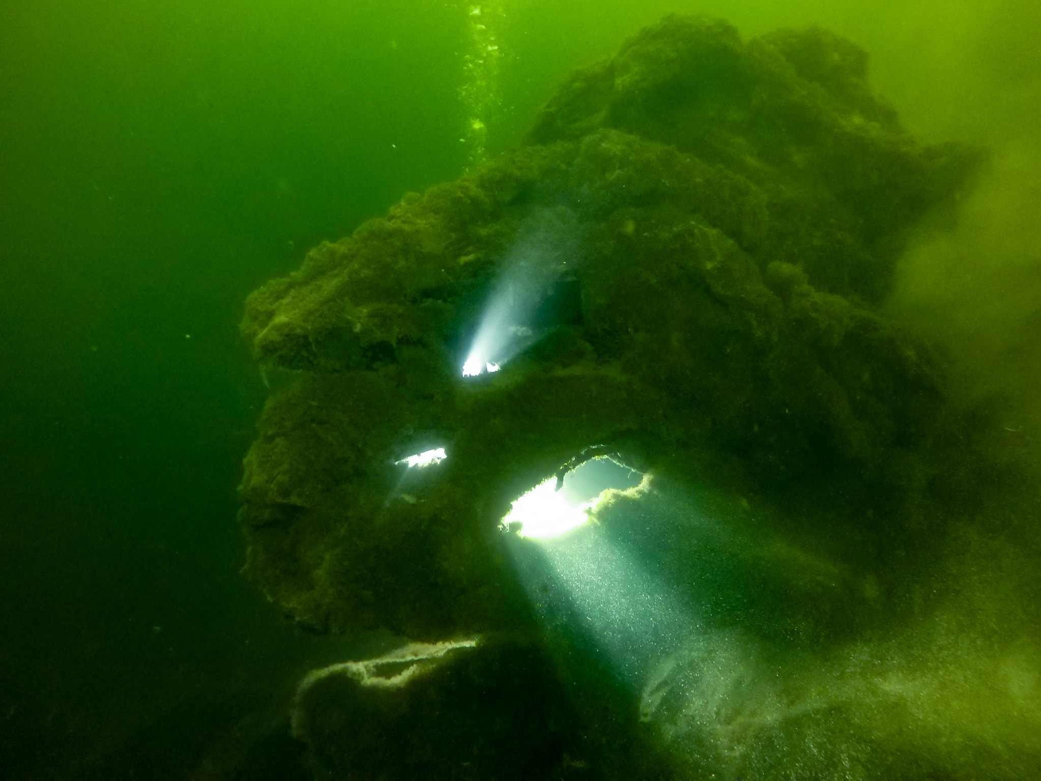 В Яйлю мутную воду с глинистой взвесью из Чулышмана мы уже почти не ждали, в прошлом году за один день подводная видимость упала почти до нуля в конце июня. До 20-х чисел июля мы наслаждались неплохой прозрачностью воды, даже несмотря на постоянные проливные дожди и активизировавшиеся ручейки и речки, несущие в озеро почти весеннюю жёлтую воду. С воздуха видно как речные и озерные воды перемешиваются, образуя узоры напоминающие рисунок молочно-кофейной пенки в кружке с капучино. Но это все равно изменения местного значения и только побывав у мыса Ажи мы поняли что "Чулышнская муть" все таки дошла, мест с прозрачной водой не осталось и видимость редко где превышала 2-3 метра, причем независимо от глубины. С нетерпением ждём оседания мути, но так озеро обогащается минеральными веществами и органикой, круговорот жизни идёт своим ходом. Несмотря на не самые благоприятные условия для фотосессии все же сделали несколько кадров в контровом свете для наглядности. Вода уверенно прогрелась до +12С, что делало последние 6-и и 3-х метровые остановки невероятно приятными, озеро как будто ставит перед выбором - либо видимость, либо тепло.. Интересно было наблюдать за большими скоплениями хвойной пыльцы на воде, образующей целые гигантские "реки", растягивающиеся на километры. А вот задымление от далёких пожарищ горящей страны не могло вызвать ничего кроме печали и тревоги. Отголосок катастрофы дошел и до нас, украл небо и сделал солнце красным. Ждём осени и смотрим в будущее с надеждой...