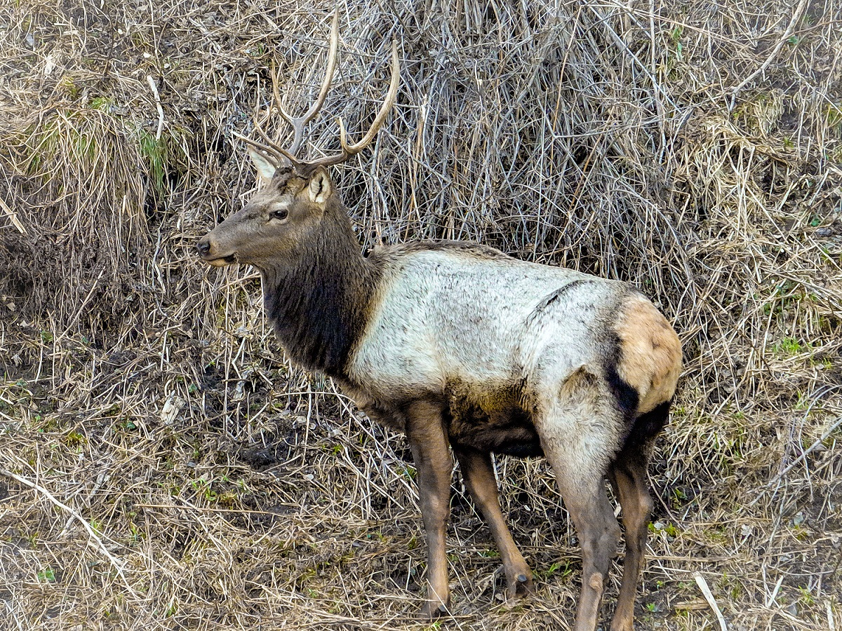 Косули и маралы после непростой снежной зимы пасутся на открытых полянах, куда их привлекают первая появившаяся трава, но в случае малейшего подозрения на опасность стараются укрыться под защитой густых хвойных участков. Некоторые из маралов уже успели сбросить рога в первой половине апреля, а их стада насчитывают до 7-8 особей.