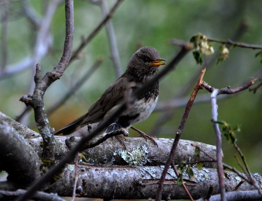 У чернозобого дрозда Turdus atrogularis птенцы уже покинули гнездо.