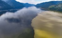 Сотрудники Алтайского заповедника Роман Воробьёв и Татьяна Клименко запечатлели уникальные кадры впадения мутных вод Чулышмана в прозрачное Телецкое озеро.