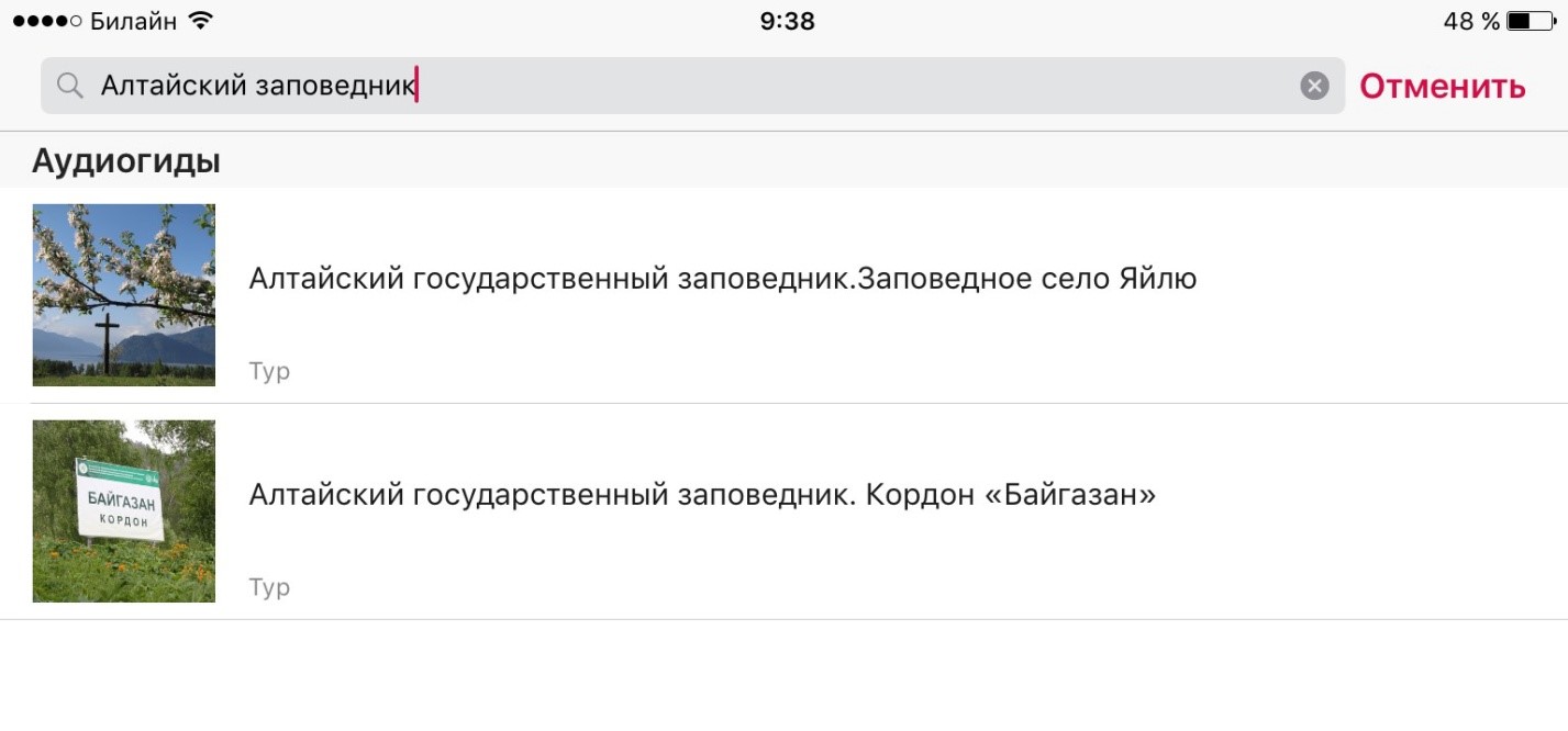 После установки файлов прогулки на Ваше устройство, Вы можете пользоваться аудиогидом вне зависимости от наличия сетей связи.