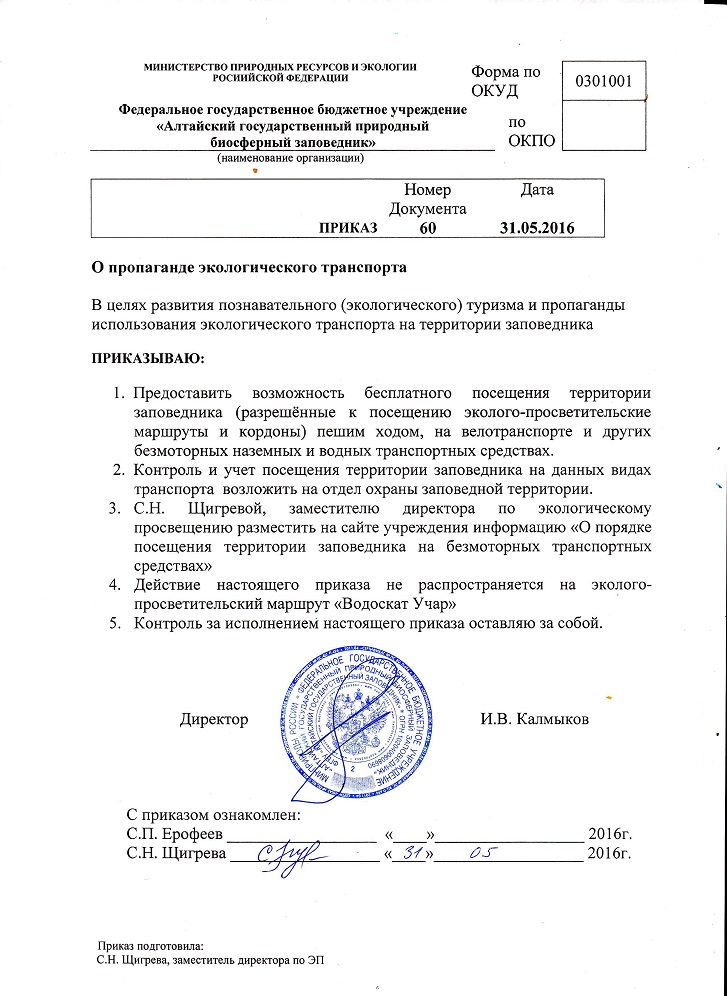 Посещение » Важная информация! » О пропаганде экологического транспорта на территории Алтайского биосферного заповедника