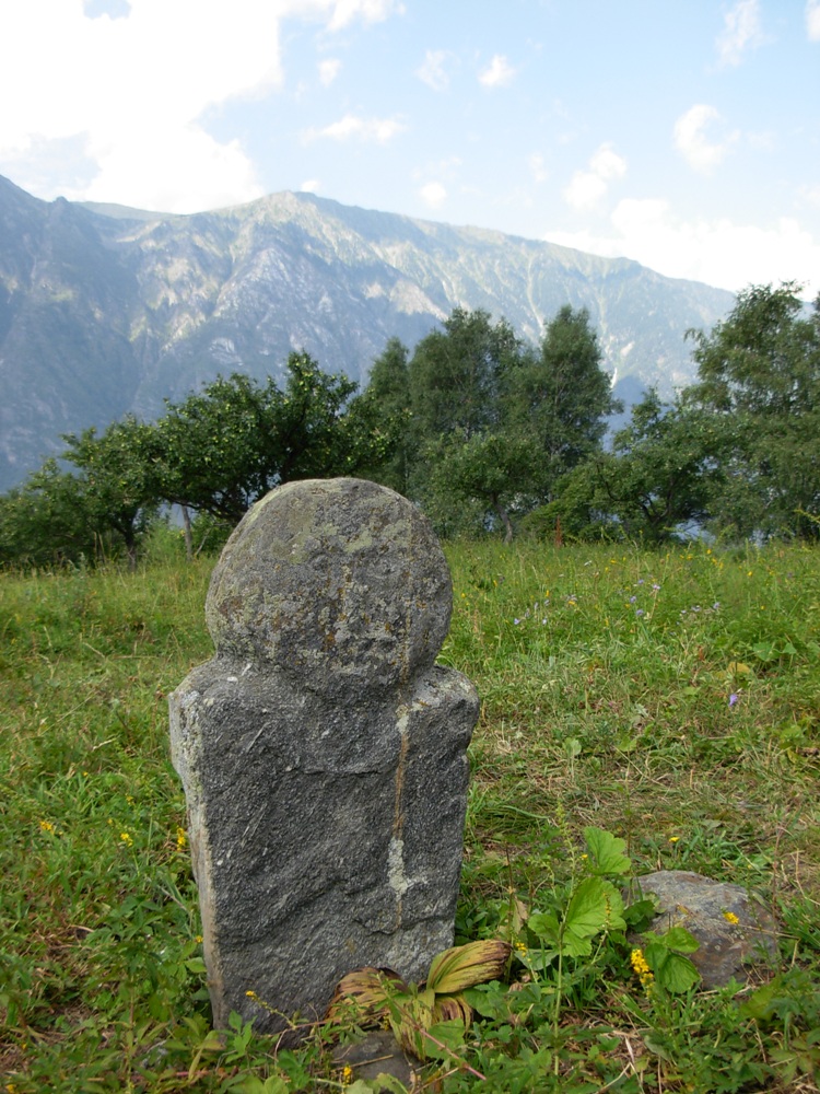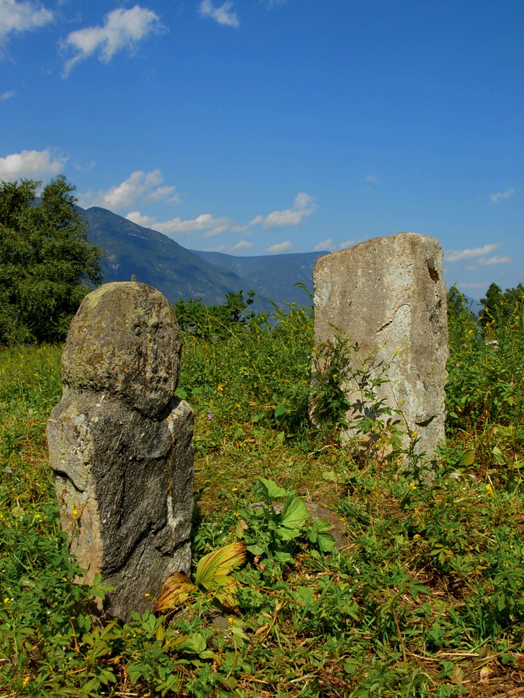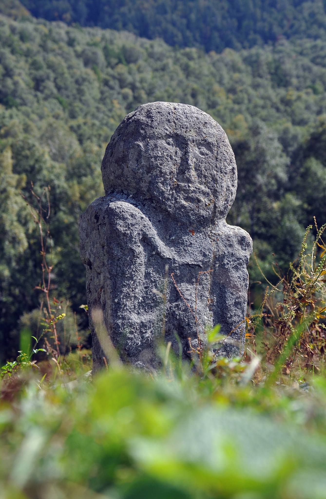 Большинство же других изваяний - попроще. Где выбито только лицо, где - в дополнение - еще и детали одежды, оружие. А где и просто устанавливались камни, лишь схематично напоминающие человека. (1)