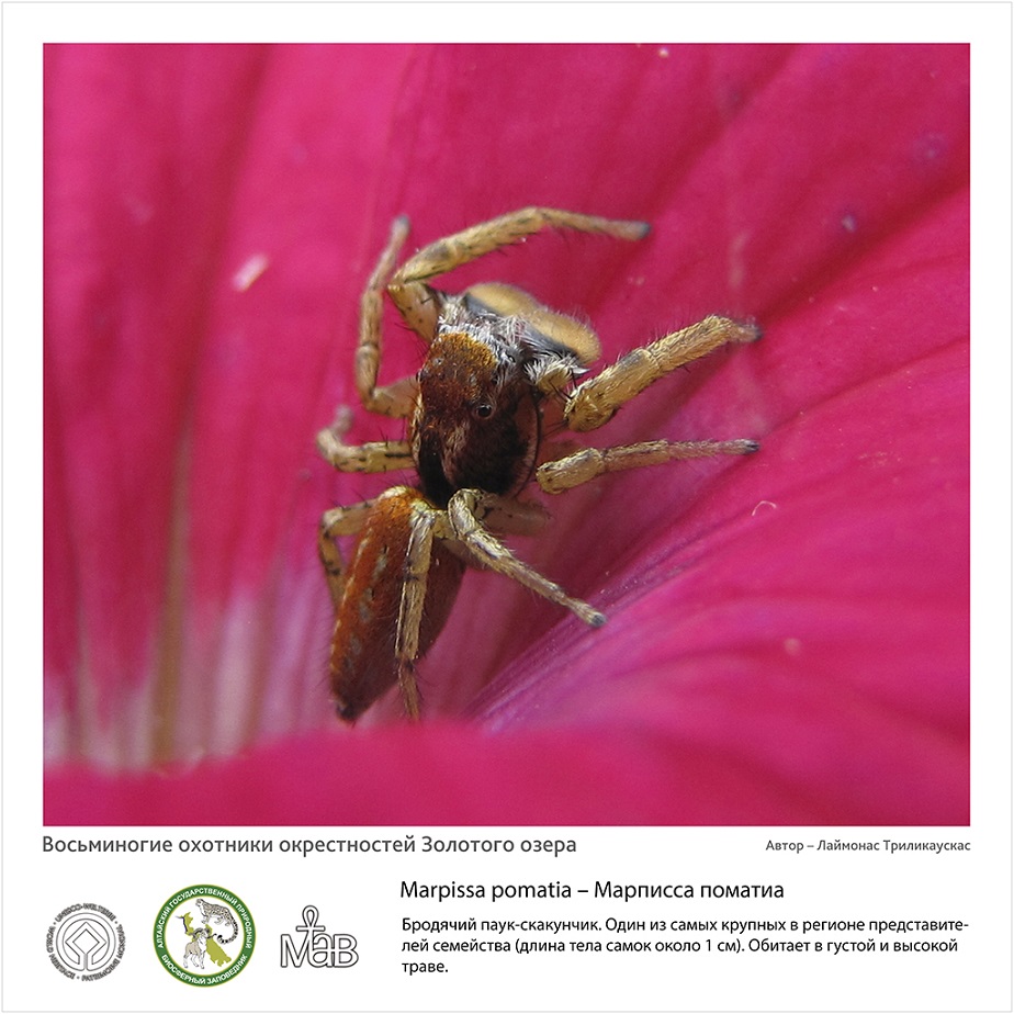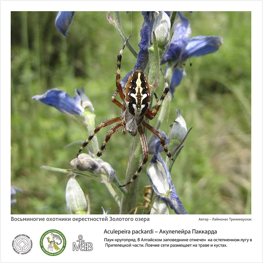 Автор фотографий и текстовых описаний -  Лаймонас Триликаускас, к.б.н., младший научный сотрудник лаборатории систематики беспозвоночных животных Института систематики и экологии Сибирского отделения Российской академии наук (г. Новосибирск). В рамках договора о научном сотрудничестве Л. Триликаускас исследует видовой состав и экологию пауков Алтайского заповедника.
