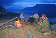 В Камгинском заливе встретилась группа маралов Cervus elaphus, состоящая из прошлогодней самки, самки с детенышем и взрослого рогача.