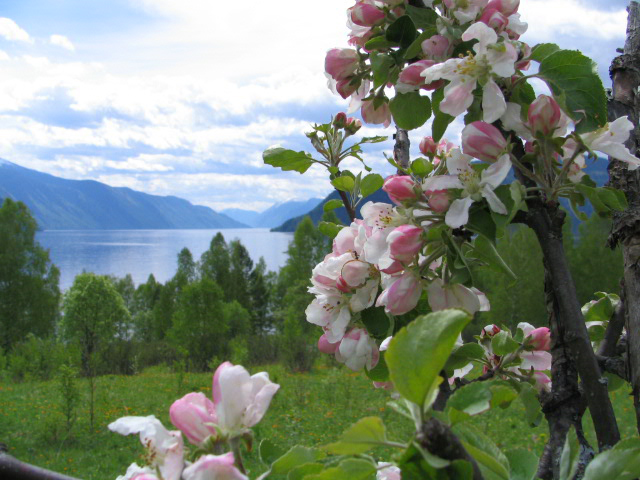 Телецкое озеро. Село Яйлю, центральная усадьба Алтайского биосферного заповедника, погружённая в разноцветие весенней тайги и фруктовых садов. Цветущий месяц май в заповедных садах, созданных добрыми человеческими руками в течении последних 70-ти лет, полон неумолкаемого гудения-гомона шмелей и пчёл. Этот трудолюбивый местный народец со знанием дела перелетает с цветка на цветок, собирая божьи дары и зарождая, в свою очередь, в соцветиях яблонь, груш, абрикосов, вишен и слив потомство будущего целебного урожая, радости взрослых и детей Телецкого озера.