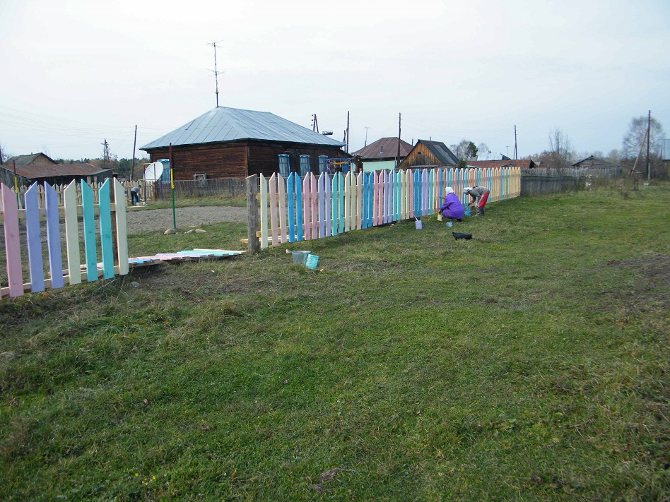 Площадку строили, что называется, всем миром. Объявили субботники, по выходным односельчане, отложив свои дела, собирались на площадке. Совместными усилиями мы выровняли поверхность, сняли дерн, привезли и засыпали песок на волейбольной площадке, сварили из труб и зацементировали столбы для волейбольной сетки, небольшой турник и брусья (их в первоначальном проекте не было), сделали ящик для мусора и лавочки, огородили участок и всё покрасили. Я благодарю жителей села, принявших участие в этом большом деле. Осень – время, когда и на собственных подворьях работы столько, что не хватает дня, но люди находили время и силы и для площадки.