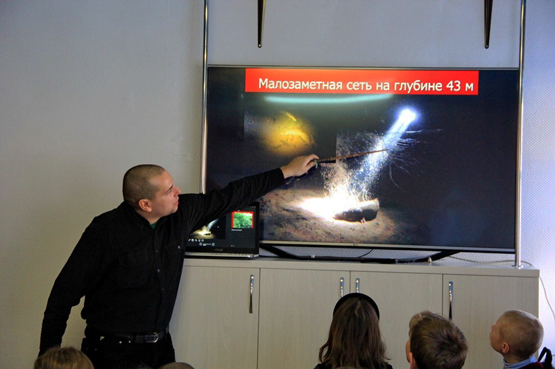 Татьяна Клименко представила вниманию школьников и преподавателей свой авторский фильм, рассказывающий о сложной и интересной работе их группы, изучающей и сохраняющей подводный мир