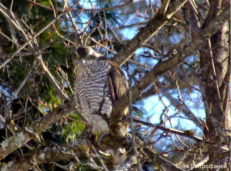 В березово-сосновом лесу по причине полного отсутствия орехов сосны сибирской или кедра, доминируют пестрые дятлы Dendrocopos major; немногочисленные пухляки Parus montanus, поползни Sitta europaea, а также клесты-еловики Loxia curvirostra встречаются единично; большинство особей этих видов тоже откочевали в другие, более кормные, местообитания. Лес стоит притихший и, местами, почти без снега.