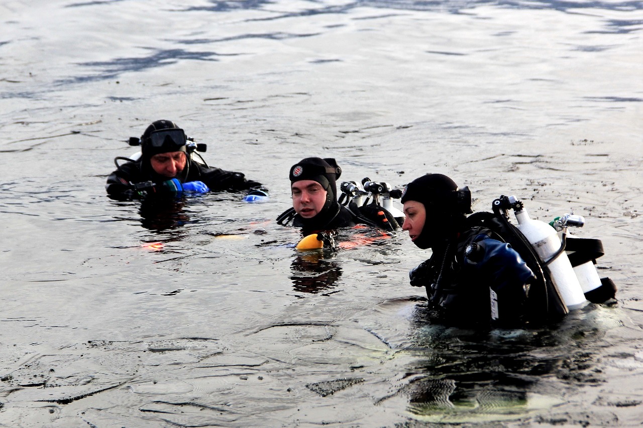 19 и 22 января Татьяной Клименко и Романом Воробьёвым (дайв-клуб «Зазеркалье», г. Барнаул) также совершено два глубоких исследовательских погружения на 75 и 80 метров. Условия погружения были экстремальные даже по местным меркам – температура на поверхности -26°С, в воде +1°С. Как всегда, порадовала хорошая видимость на глубине (ограниченная только мощностью фонарей) и необследованный ранее никем подводный ландшафт. Погружения прошли штатно по плану, отсутствие волны и хорошая видимость сделали декомпрессионные остановки приятными с эстетической точки зрения.
