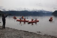 Но весна все же берет свое; как тонко и точно подметил в своем стихотворение «Вешние воды» Федор Иванович Тютчев «Еще в полях белеет снег, а воды уж шумят весной…»; проснулись первые ручьи и речки; вода бежит, пока, по ледяному руслу и неумолимо стремится к озеру.