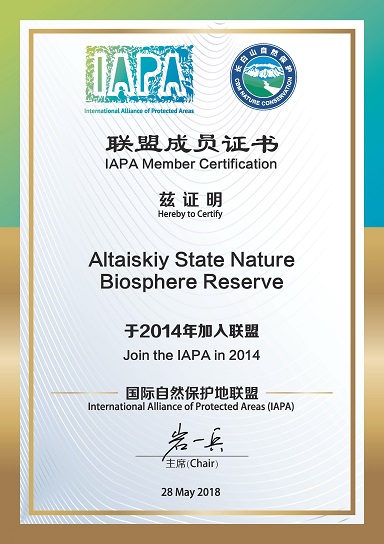 Международное сотрудничество Алтайского заповедника На сайте Алтайского заповедника в разделе «Международное сотрудничество» размещена новая информация. Это методические материалы в помощь биосферным резерватам, разработанные руководством и участниками Международного Альянса особо охраняемых территорий (IAPA). Материалы обсуждались на прошедшей в сентябре 2018 года Международной экологической конференции (г. Чанбайшань, КНР). Отметим, что Алтайский биосферный заповедник недавно получил сертификат, подтверждающий членство в IAPA с 2014 года.
