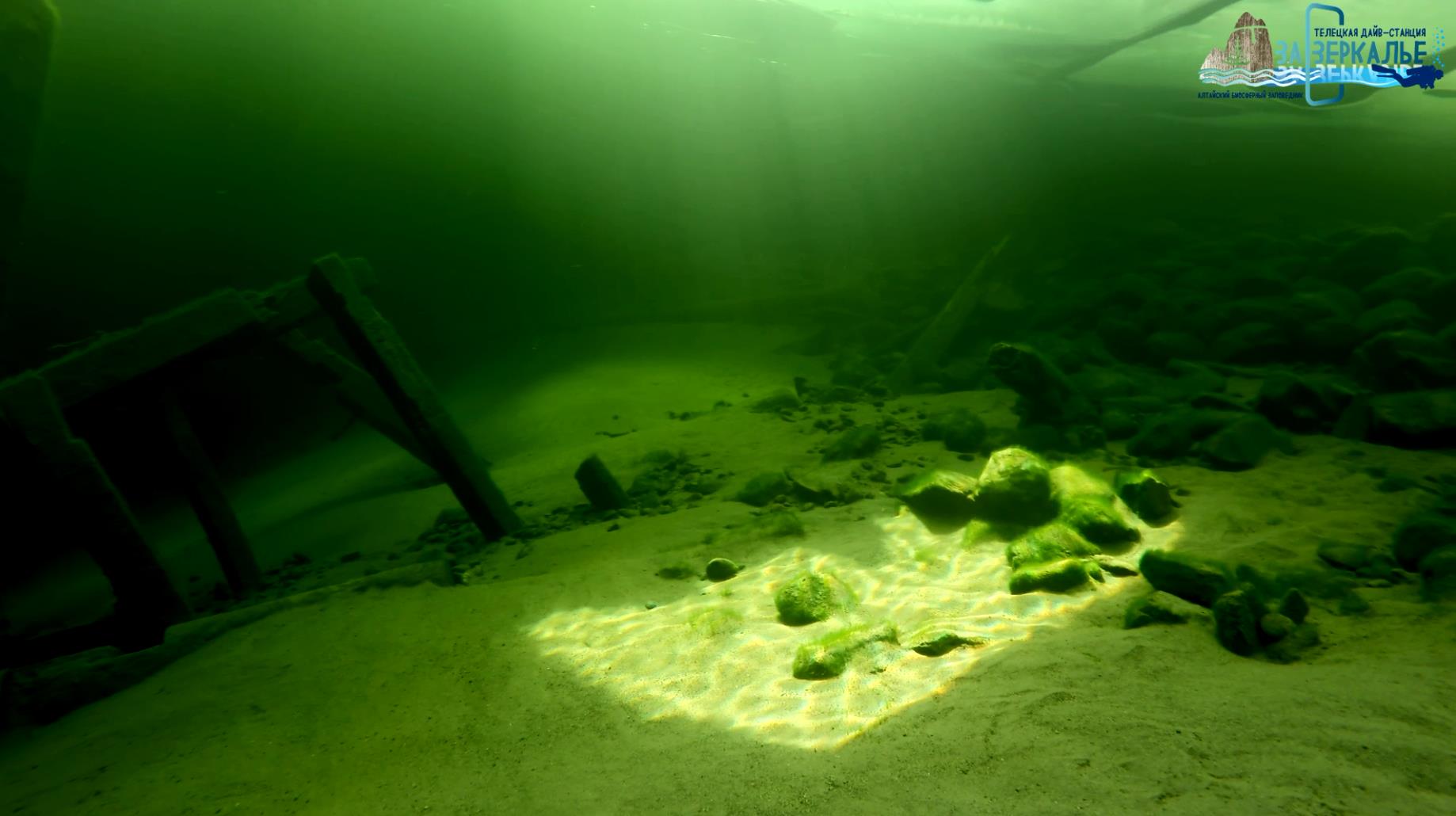 «Подлёдной дайвинг это прежде всего яркие эмоции, неповторимое впечатления от пейзажей параллельного мира Золотого озера», - говорят авторы фильма. Именно зимой, в те редкие годы, когда Телецкое замерзает, появляется возможность смотреть сквозь толщу кристально прозрачной холодной воды на 15-20 метров вдаль. Майна,* сделанная в 3-4 метрах над свалом** (толщина льда около 27 см), воспринимается как портал в другое измерение из фантастических фильмов, а из зеркальной поверхности воды струится солнечный свет, переливаясь всеми оттенками жёлтого, зелёного и голубоватого.
