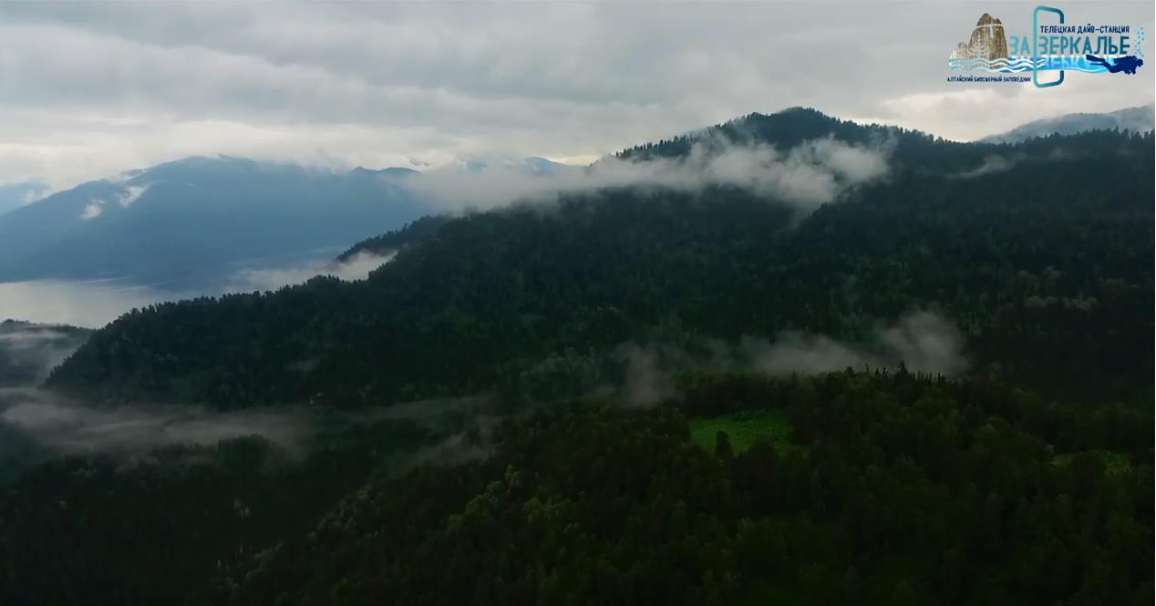 Весь июнь и начало июля 2019г. на Телецком почти непрерывно моросил дождь, дули холодные ветра, а на берег словно волны накатывался с озера густой туман. Только в редкие солнечные дни плотная пелена туманов ненадолго отступала под натиском солнца. Благодаря низкой облачности удалось показать сверху облака, цепляющимися за склоны гор. Съемка давалась нелегко из-за сильного ветра и капель воды, оседающих на камере при полете, однако, кое-что получилось.