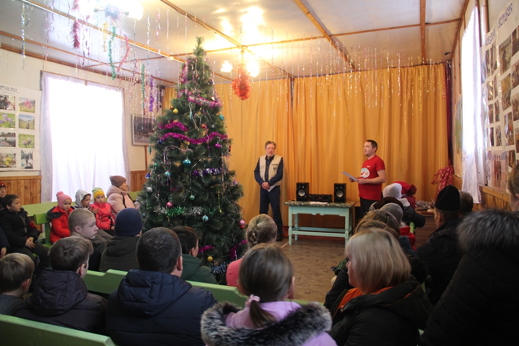 У наряженной ёлки собрались местные жители со своими детьми и внуками. Необычный сход открыли председатель ТОС «Заповедное село» Данил Сергеевич Ерофеев и сотрудник отдела экологического просвещения и познавательного туризма Евгений Дмитриевич Веселовский. Первым слово взял Евгений Дмитриевич и поздравил земляков с наступающим Новым Годом.