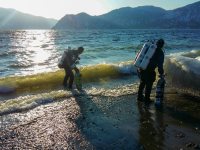 Каждый день на Золотом озере неповторим. Солнечный день окрашивает волны в изумрудный цвет, а в пасмурные дни отблески заката на считанные минуты пробиваются через плотную завесу облаков. Под водой же, на мелководье волны решают, что увидит дайвер - непроглядную пелену взвеси или подводные пейзажи в кристально чистой воде.