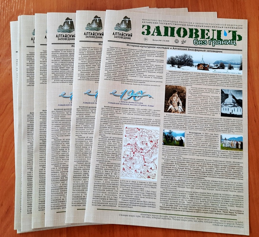 На сайте Алтайского биосферного заповедника размещён цифровой вариант очередного выпуска газеты «Заповед'Ъ Без границ» (13 (1)2020).