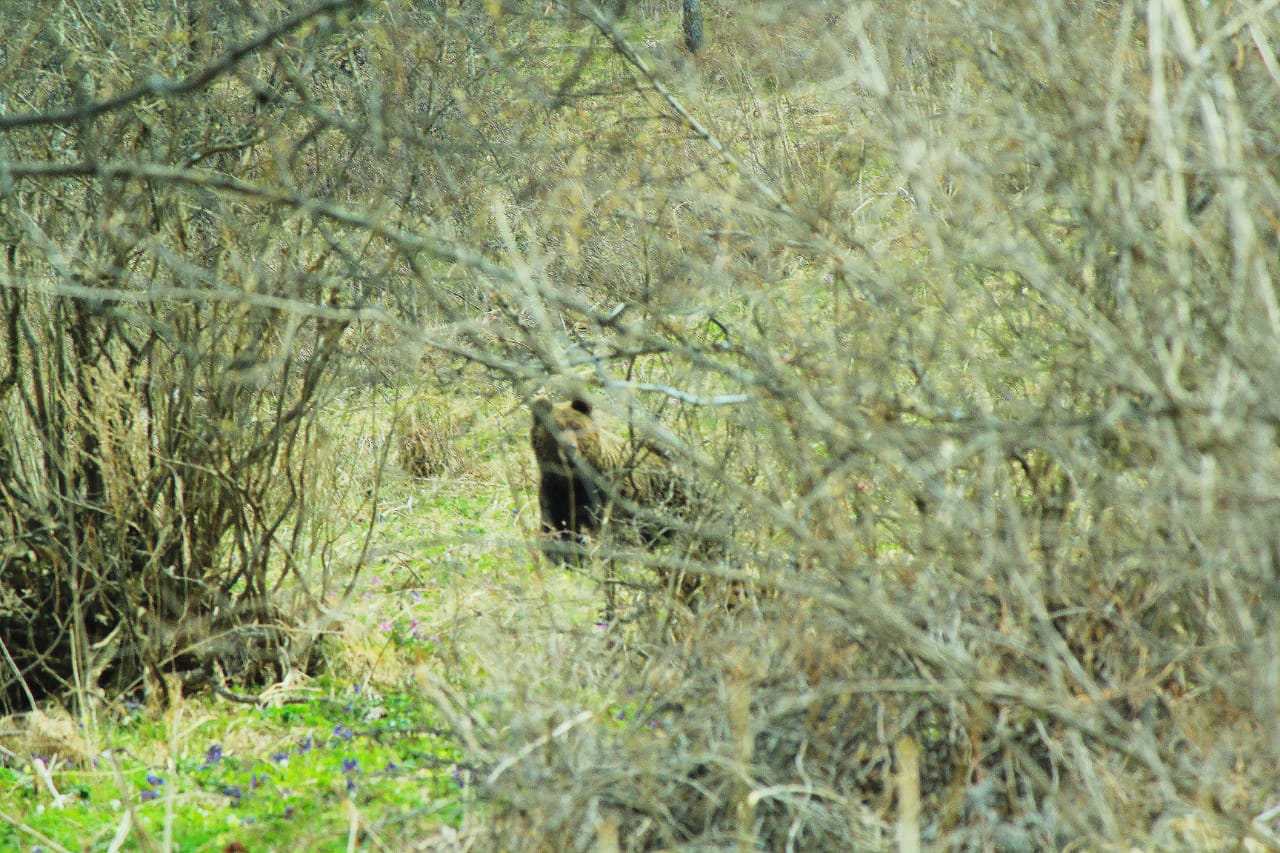25 апреля государственный инспектор Светлана Кульбацкая, проживающая на кордоне Караташ, наблюдала медведя, шедшего по своим делам мимо заповедного кордона. "Медведь проходил в сторону Артыбаша, обходя нас полукругом, пару раз, заинтересовавшись, останавливался", - комментирует государственный инспектор. Светлане удалось сделать несколько кадров таёжного Хозяина.