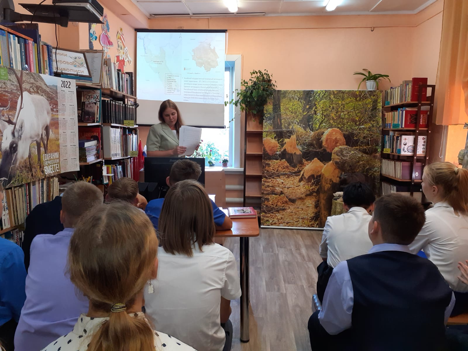 Научный сотрудник Елена Черткова провела лекцию «Экология речного бобра в Алтайском заповеднике» для школьников 7 Б класса «СОШ № 8» на площадке городской библиотеки № 1.