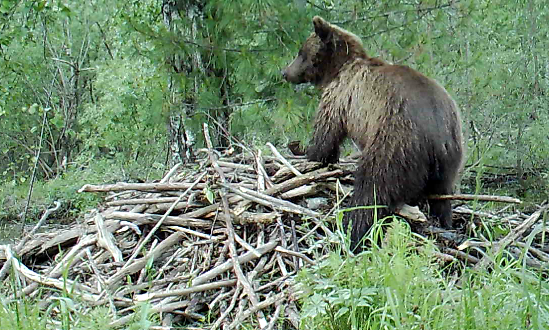 Бобров снять не удалось, на камеру попал медведь, разоряющий бобровую хатку, пытающийся добраться до этих животных и интересующийся кабан. Также рядом проходили медведица с тремя медвежатами и косули.