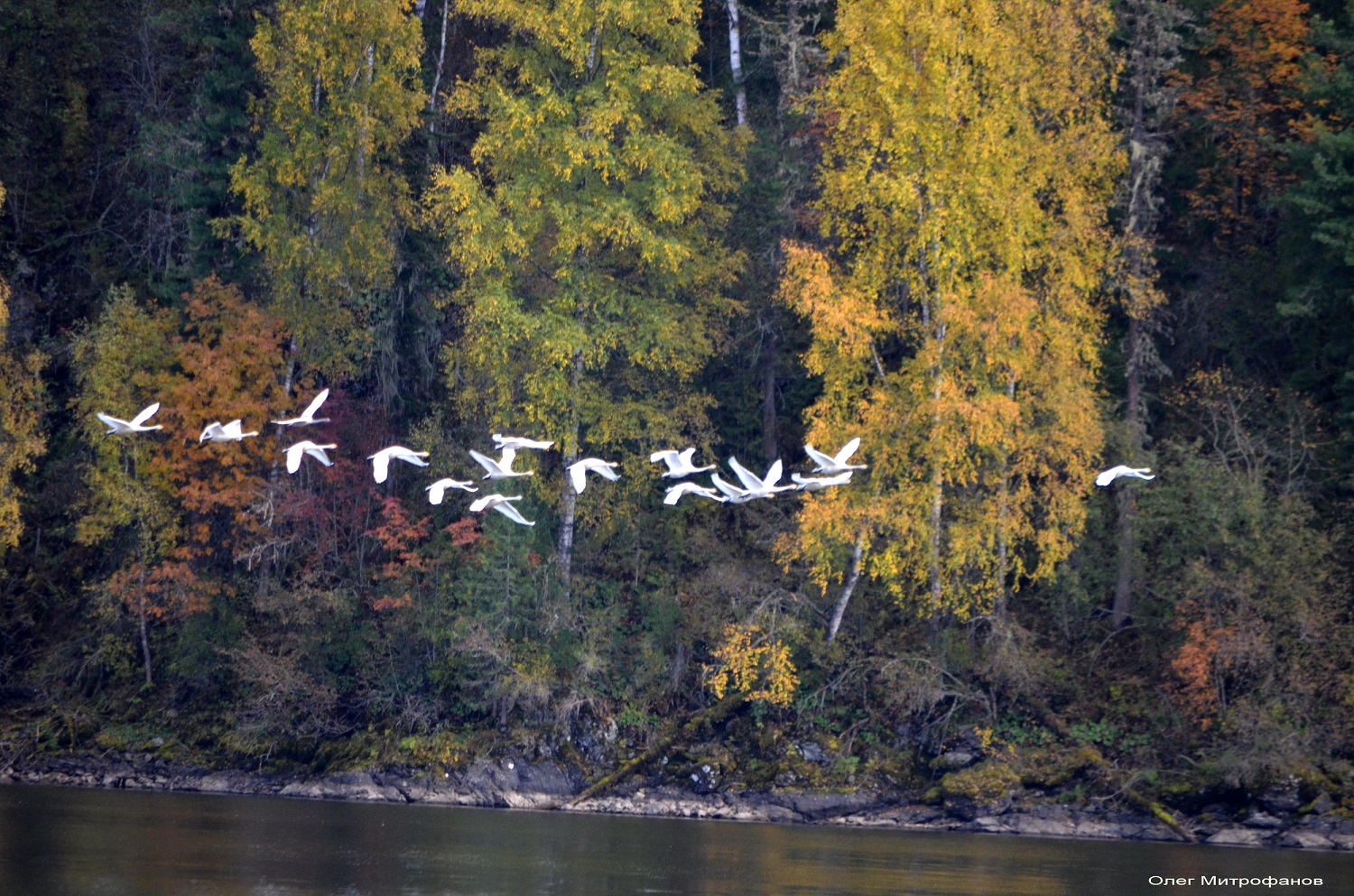 В октябре над озером проходил массовый пролет лебедя-кликуна Cygnus cygnus. Лебеди часто летели перед непогодой, используя попутный северо-западный перенос воздушных потоков.
