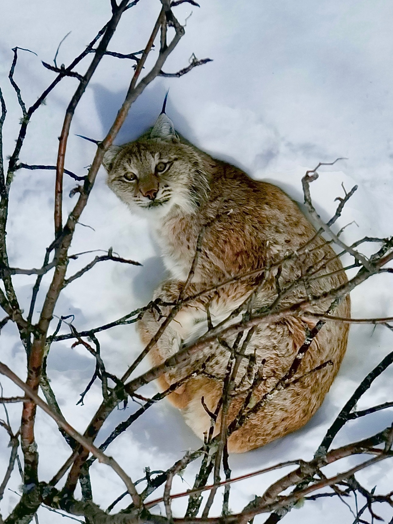 Пятнистый сероватый окрас делает ее незаметной среди выходов скальной породы, и на фоне вытаявших из под снега участков травянистого склона. Широкие и покрытые густой шерстью в зимний период лапы позволяют крупной дикой кошке, ходить по глубокому снегу почти не проваливаясь. Для чего рыси нужны кисточки на ушах однозначного ответа нет (от инструмента продвинутого улавливания звуковых волн, до средства внутривидового общения), но кошачьи ушки замечательны и всегда привлекают внимание.
