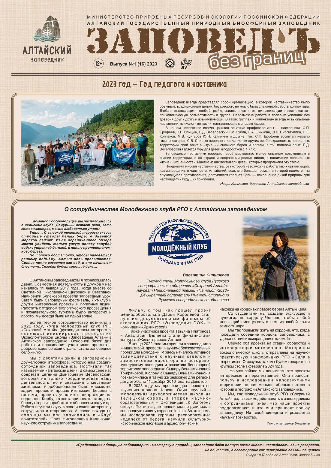 Очередной выпуск газеты Алтайского заповедника «Заповедь без границ», посвящён году педагога и наставника.
